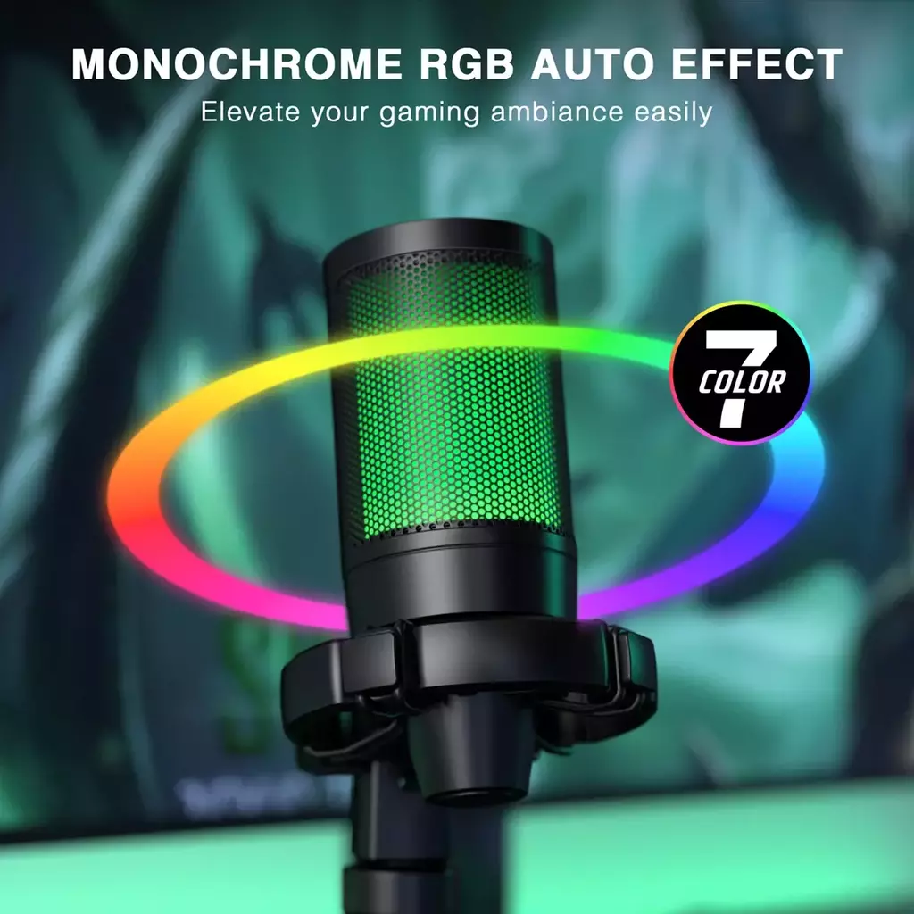 Destaque-se com os deslumbrantes efeitos de iluminação RGB, ostentando 7 cores vibrantes que adicionam uma atmosfera dinâmica à sua configuração de jogo. Iluminação rgb atraente para ajudá-lo a se destacar no mesmo tipo de transmissão de jogos.